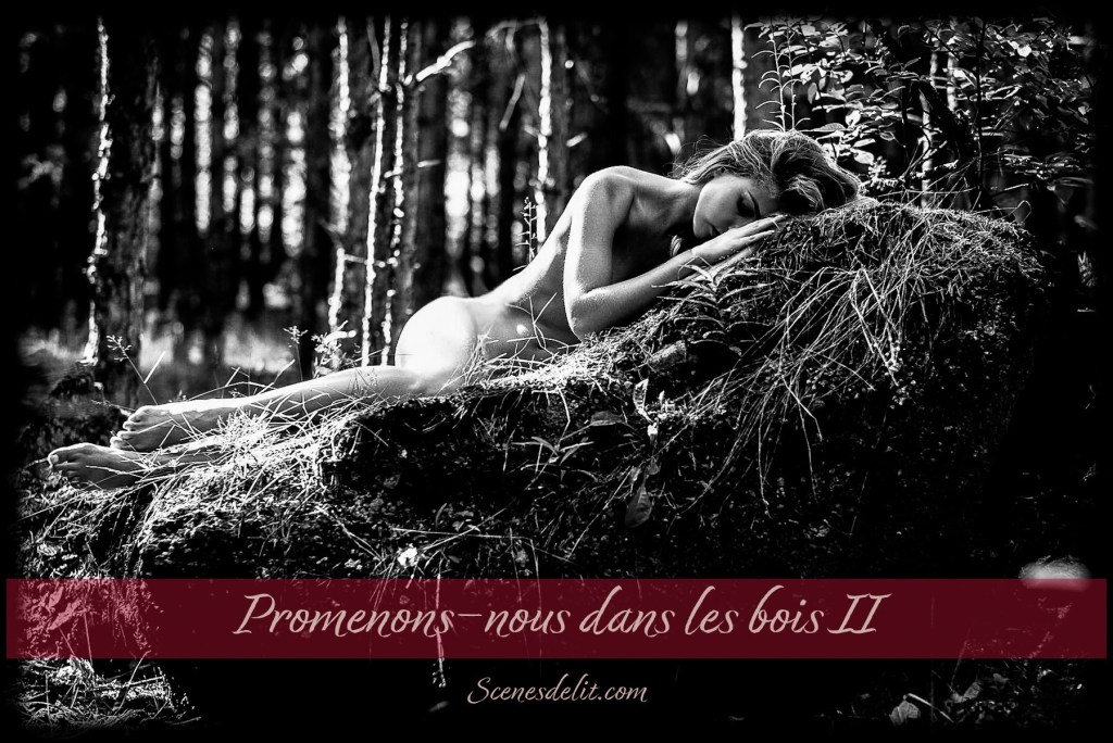 « Je me redressa pour te contempler. La pilosité de ton pubis faisait écho à la mousse sur laquelle tu reposais alors que ta peau blanche tranchait avec les nuances de vert de ton matelas. Tu m’évoquais une déesse de la nature en harmonie au milieu de la forêt, libérée et libre pour profiter de celle-ci et de ses plaisirs de chair. »