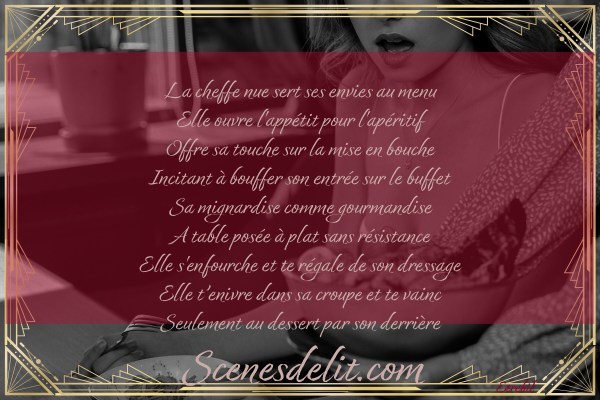 “Et elle releva ses cheveux, prête à recevoir ses baisers Elle l’appelait de ses vœux et comment lui refuser Un regard glissant de sa nuque à ses fesses aurait mis jusqu’à un eunuque en liesse Son dos piste l’envol de deux ailes sur ses reins tatoués Ou se posent deux lèvres qui rêvent de s’y... Lire la Suite →
